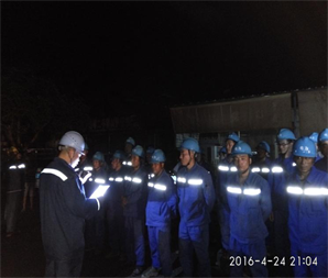 施工單位明浩配電事業(yè)部搶修現(xiàn)場負責人、江門市蓬江供電局、調度中心、運維部門相關人員陸續(xù)來到搶修現(xiàn)場,對現(xiàn)場進行勘察,由于夜間作業(yè),輸電線路中斷導致大面積停電,搶修現(xiàn)場漆黑一片,施工照明不能全面覆蓋,現(xiàn)場施工搶修難度系數(shù)相應增加。在確認預制安全技術措施無誤后,現(xiàn)場負責人對施工作業(yè)人員進行作業(yè)票講解和現(xiàn)場安全技術交底(附圖)。