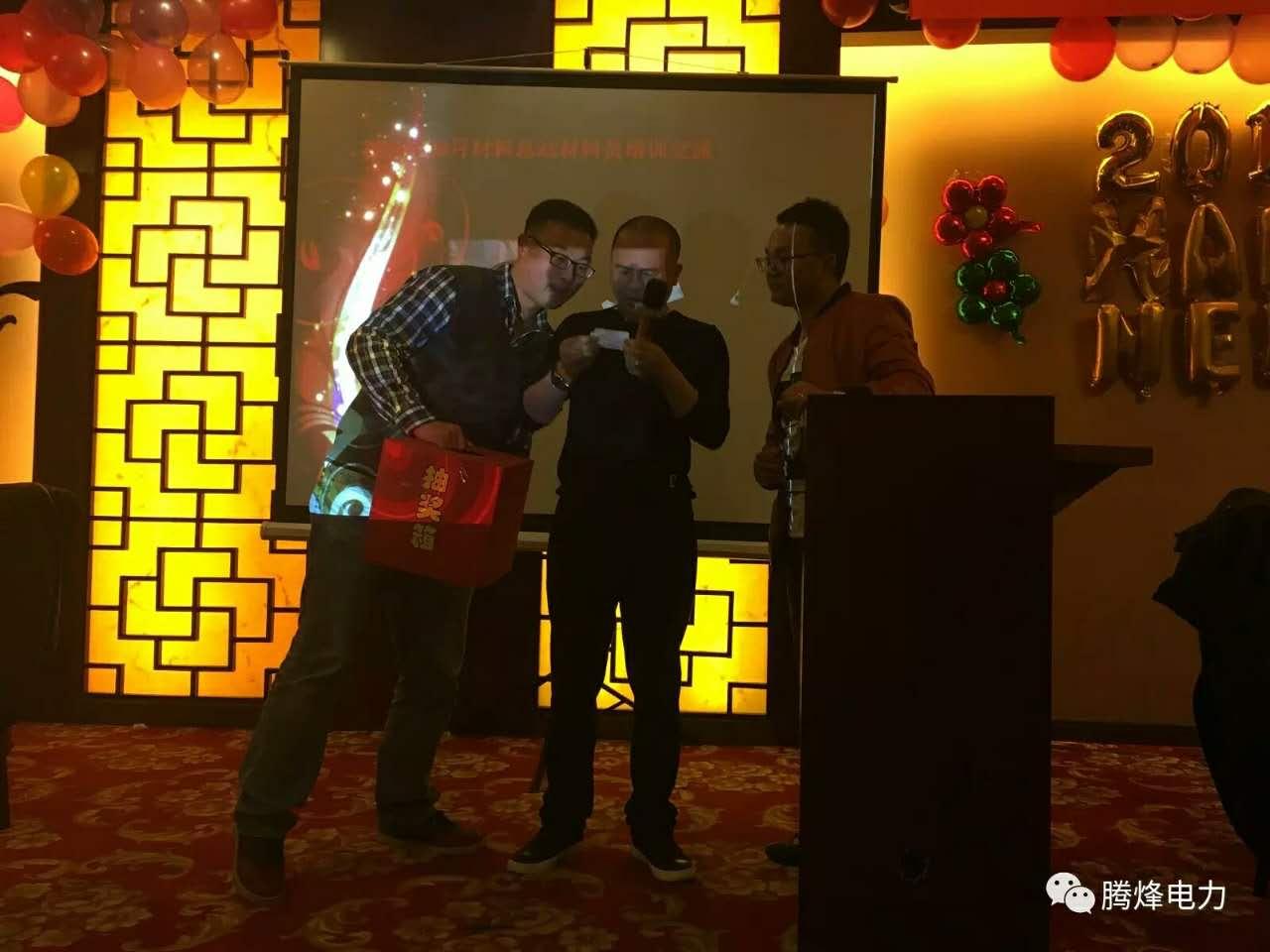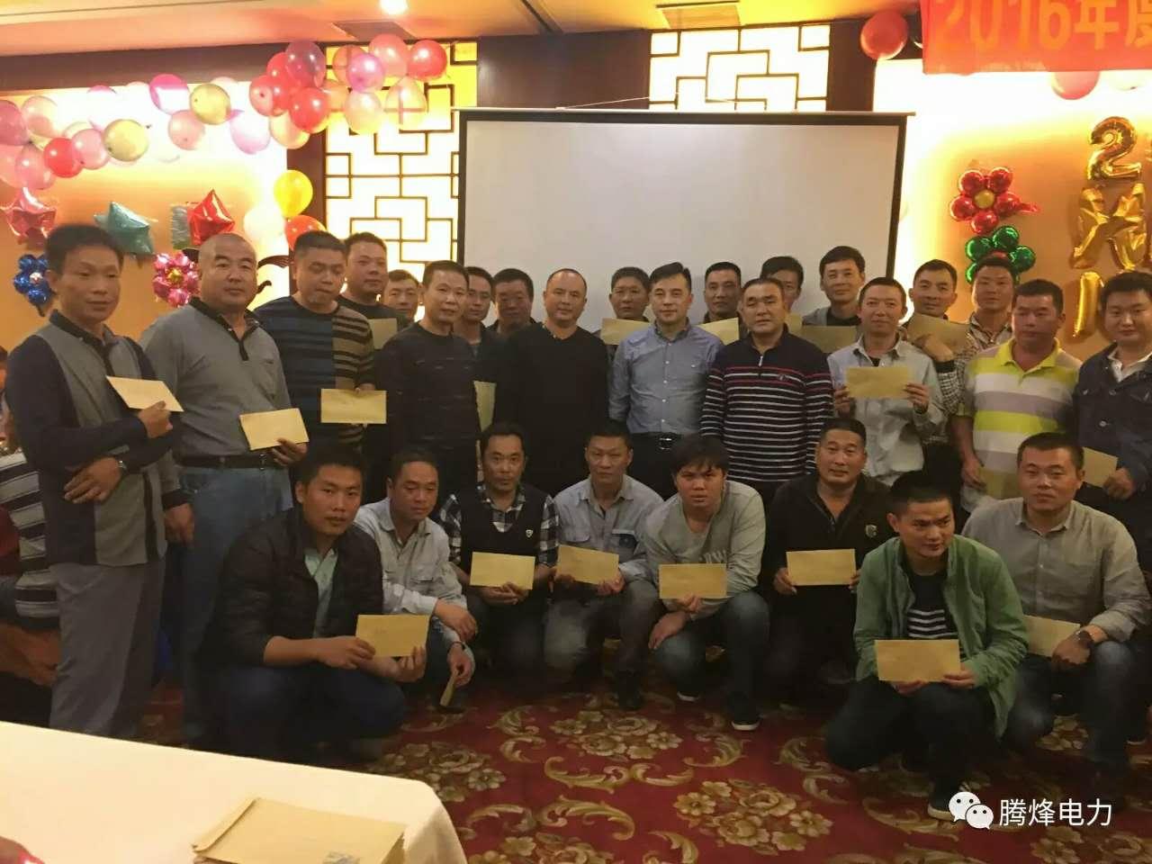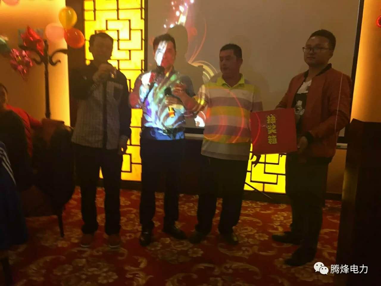 2017年1月20日,我公司2016在廣東省深圳市光明新區(qū)長豐花園酒店3樓會(huì)議室召開年終總結(jié)會(huì),會(huì)議上對(duì)2016年的工作進(jìn)行總結(jié),公司晚宴年會(huì)在2樓成功舉行,晚宴前公司總經(jīng)理蔣浩同志對(duì)公司2016年的各位先進(jìn)員工進(jìn)行表彰,對(duì)2016年微信公眾平臺(tái)投稿先進(jìn)集體及個(gè)人進(jìn)行頒獎(jiǎng),并對(duì)年末仍堅(jiān)守在深圳500kV滇西北工地的管理人員和22個(gè)班組給予特殊貢獻(xiàn)獎(jiǎng)。在晚宴就餐中,進(jìn)行了一輪又一輪的即興現(xiàn)場抽獎(jiǎng)。截止晚上11點(diǎn),年會(huì)正式結(jié)束,標(biāo)志著騰烽電力2016年年會(huì)暨表彰大會(huì)正式圓滿落幕。