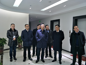 (縣委書記鄭鵬程率縣委、縣政府領導參觀我公司總部大樓,聽取蔣董的介紹)