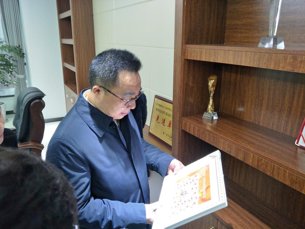 (鄭書記觀看我司董事長榮獲廣安市優(yōu)秀民營企業(yè)家紀念郵票)