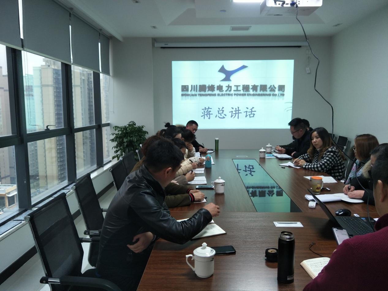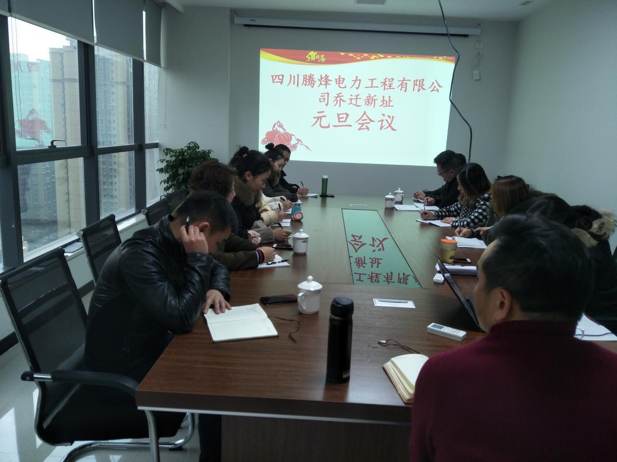 2019年1月1日14:30分,公司董事長蔣浩和總經(jīng)理蔣晶召集岳池辦公室全體成員召開了公司喬遷新址的元旦會議,會議上,公司辦公室成員對過去一年的工作做了梳理,對來年的工作做了基本的規(guī)劃,總經(jīng)理及董事長對公司總部的日常工作及相關(guān)問題做了部署和安排。