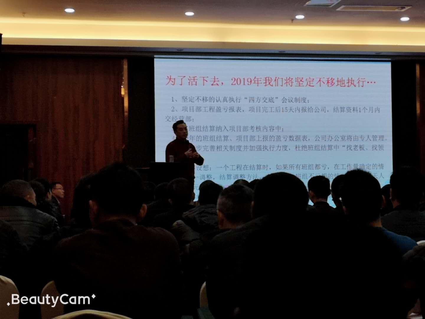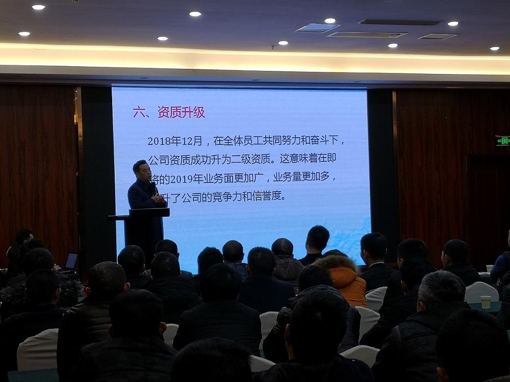 在2018年中,公司產(chǎn)值近5億元,相較2017年,產(chǎn)值呈1.5億元的增長,累計納稅5000余萬元;公司共完成基礎(chǔ)施工方量73100m3,鐵塔組(拆)立約72220噸,架空線路約970km。蔣董在回顧上一年的成績時,也指出了發(fā)展中的一些不足,如:項目部方面對班組結(jié)算不及時,對數(shù)據(jù)未及時匯總上報,管理人員對年輕技術(shù)員的培養(yǎng)關(guān)心不夠等,導(dǎo)致公司結(jié)算工作積壓,不能準確進行經(jīng)營分析以及人員流失;班組管理方面對工器具使用混亂,習慣性違章情況突出,物資回收落實不到位等,導(dǎo)致公司成本增加。為此,在會議上,蔣董對公司新一年的工作進行了安排和部署:2019年,我們就只有一個目標——“活下去”。為了活下去,公司全體員工,要堅定不移的執(zhí)行“四方交底”會議制度;項目部相關(guān)報表及時反饋到相關(guān)部門;加大度執(zhí)行力,按制度辦事,以制度管人;革新管理思路及辦法,加大獎懲力度,激發(fā)員工活力;同時,要主動積極地關(guān)注同行工程施工,“學人之長,避己之短”。蔣董的安排與部署,為公司新一年的發(fā)展和各項工作的順利進行指明了方向,同時也為員工成長提供了保障。隨著公司資質(zhì)成功升級為二級,在2019年中,公司業(yè)績將再上一個臺階。